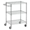 棚板3段、アングル式支柱のハンドル付ワゴンです。棚板は表裏(フラットと皿型)両面使用できます。※画像はイメージです。