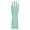 塩化ビニール製で、天然ゴム製に比べて油や洗剤に強い手袋です。