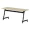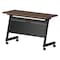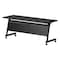 レバー操作で天板がフラップするスタックテーブル。連ねての収納が可能。スチール製の棚付きで便利。脚部はL型で足抜けが良く、キャスターはストッパー付きなので楽に移動、固定できます。