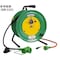 電工ドラムを個性で使う。両面印刷。防雨型(IPX3)。電線長30m。防雨キャップ付コンセント。電線を巻いたまま使用し、電線温度が80℃になると自動的に電気をしゃ断します。+もっと見る