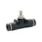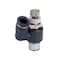 駆動機器の速度制御弁。取付け後、金属本体と樹脂本体の回転により、チューブの取り出し角度の変更が可能。