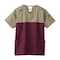 首回りの汚れが目立ちにくい、ネイビー色の配色のチュニックです。点滴の交換作業など、腕の上げ下ろしがしやすいように設計されたエルゴカット仕様の袖が機能的なチュニック。