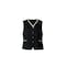 配色のボタンとトリミングがアクセントのベスト。凸凹感のあるツイード調の素材を使用し、清涼感のある印象。おうちでの洗濯も可能。シンプルなデザインとベーシックなカラーで幅広い職種や年齢の方が着用可能です。
