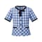 ノーアイロンでお手入れ楽ちんなギンガムチェックのポロニット。ラッフルリボンがアクセント。+もっと見る
