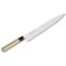 『真久作』スーペリアシリーズ主に刺身造りに適しています。細長く、薄い片刃が付いている為、引き切りをする刺身に使用します。 切った後の繊維を傷付けない口当たりは、刺身包丁でしか出すことができません。+もっと見る
