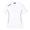 右肩にブランドロゴの刺しゅう入り。着やせ効果のあるカーブを描く脇パイピング。すっきりとしたVネックです。