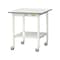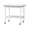 シンプルで丈夫!使いやすいキャスター付き作業台!足元に半面棚付きで収納に便利!独自構造により組立しやすくスッキリな見た目と全体均等耐荷重128kg(自重含む)の安定性を実現!天板はRoHS2対応の低圧メラミン天板。表面硬度が高く摩耗に強いため、物流現場での梱包/検品/組立等の軽作業におすすめ。店舗やオフィスでの作業テーブルにも。立ち作業向け高さ2種類、825mmと1035mmをご用意。
