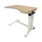 簡単操作のベッドサイドテーブル。高さはガス圧シリンダーで簡単に無段階調節が可能。脚部の高さは47mmで低床タイプのベッドにも対応します。天板の縁には段がついており、落下防止に役立ちます。